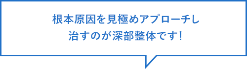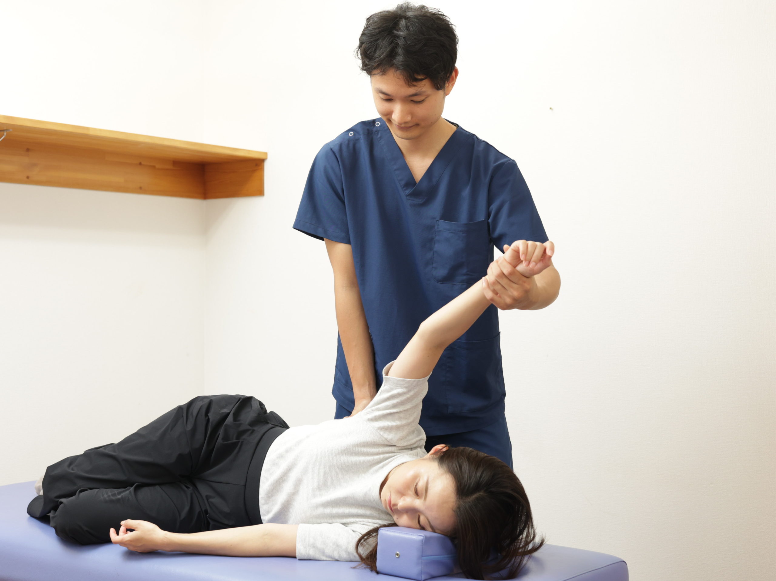 筋肉一つ一つを押圧しながら関節運動をさせることで、どの動作によって痛みが出るのかを分析し、痛みの原因となる筋肉と関節へアプローチします。